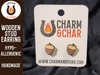Earrings are made from 3mm wood and are approximately 0.5 inches to 0.6 inches high. The posts are made from hypoallergenic stainless steel. If you do not see a color you like feel free to request a customization!!