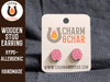 Earrings are made from 3mm wood and are approximately 0.5 inches to 0.6 inches high. The posts are made from hypoallergenic stainless steel. If you do not see a color you like feel free to request a customization!!