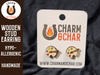 Earrings are made from 3mm wood and are approximately 0.5 inches to 0.6 inches high. The posts are made from hypoallergenic stainless steel. If you do not see a color you like feel free to request a customization!!