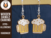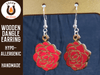 Earrings are made from 3mm wood and are approximately 1-1.5 inches in height including the hardware. The hooks and jump rings are made from hypoallergenic stainless steel. If you do not see a color you like feel free to request a customization!!