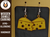 Earrings are made from 3mm wood and are approximately 1-1.5 inches in height including the hardware. The hooks and jump rings are made from hypoallergenic stainless steel. If you do not see a color you like feel free to request a customization!!