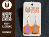 Earrings are made from 3mm wood and are approximately 1-1.5 inches in height including the hardware. The hooks and jump rings are made from hypoallergenic stainless steel. If you do not see a color you like feel free to request a customization!!