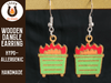 Earrings are made from 3mm wood and are approximately 1-1.5 inches in height including the hardware. The hooks and jump rings are made from hypoallergenic stainless steel. If you do not see a color you like feel free to request a customization!!