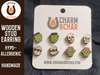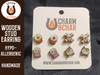 Earrings are made from 3mm wood and are approximately 0.5 inches to 0.6 inches high. The posts are made from hypoallergenic stainless steel. If you do not see a color you like feel free to request a customization!!