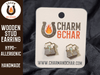 Earrings are made from 3mm wood and are approximately 0.5 inches to 0.6 inches high. The posts are made from hypoallergenic stainless steel. If you do not see a color you like feel free to request a customization!!