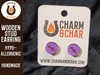 Earrings are made from 3mm wood and are approximately 0.5 inches to 0.6 inches high. The posts are made from hypoallergenic stainless steel. If you do not see a color you like feel free to request a customization!!