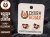 Earrings are made from 3mm wood and are approximately 0.5 inches to 0.6 inches high. The posts are made from hypoallergenic stainless steel. If you do not see a color you like feel free to request a customization!!