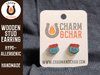 Earrings are made from 3mm wood and are approximately 0.5 inches to 0.6 inches high. The posts are made from hypoallergenic stainless steel. If you do not see a color you like feel free to request a customization!!
