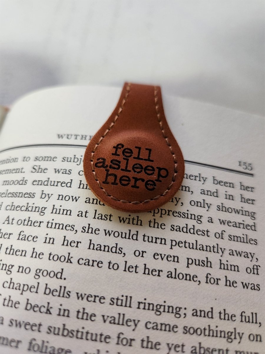 For those who love reading until they drift off, the "Fell Asleep Here" magnetic leather bookmark is a cozy essential. This handmade leather bookmark with a strong magnetic grip ensures you never lose your page again. Great for bedtime readers and anyone who enjoys a relaxing read.