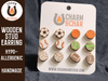 Earrings are made from 3mm wood and are approximately 0.5 inches to 0.6 inches high. The posts are made from hypoallergenic stainless steel. If you do not see a color you like feel free to request a customization!!