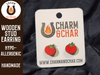 Earrings are made from 3mm wood and are approximately 0.5 inches to 0.6 inches high. The posts are made from hypoallergenic stainless steel. If you do not see a color you like feel free to request a customization!!