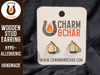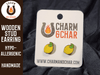 Earrings are made from 3mm wood and are approximately 0.5 inches to 0.6 inches high. The posts are made from hypoallergenic stainless steel. If you do not see a color you like feel free to request a customization!!
