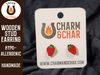 Earrings are made from 3mm wood and are approximately 0.5 inches to 0.6 inches high. The posts are made from hypoallergenic stainless steel. If you do not see a color you like feel free to request a customization!!