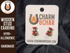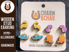 Earrings are made from 3mm wood and are approximately 0.5 inches to 0.6 inches high. The posts are made from hypoallergenic stainless steel. If you do not see a color you like feel free to request a customization!!
