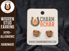 Earrings are made from 3mm wood and are approximately 0.5 inches to 0.6 inches high. The posts are made from hypoallergenic stainless steel. If you do not see a color you like feel free to request a customization!!