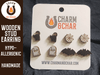 Earrings are made from 3mm wood and are approximately 0.5 inches to 0.6 inches high. The posts are made from hypoallergenic stainless steel. If you do not see a color you like feel free to request a customization!!