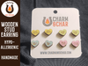 Earrings are made from 3mm wood and are approximately 0.5 inches to 0.6 inches high. The posts are made from hypoallergenic stainless steel. If you do not see a color you like feel free to request a customization!!